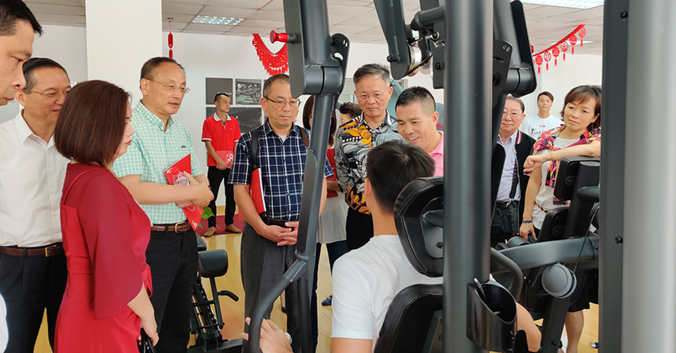 首先,来宾一行参观考察了jcjc5500公海的文化长廊,对我司的发展历程、企业文化、企业特色等方面进行初步了解。在参观一楼与负一楼展厅过程中,来宾一行对jcjc5500公海种类齐全的健身器材表现出浓厚的兴趣。